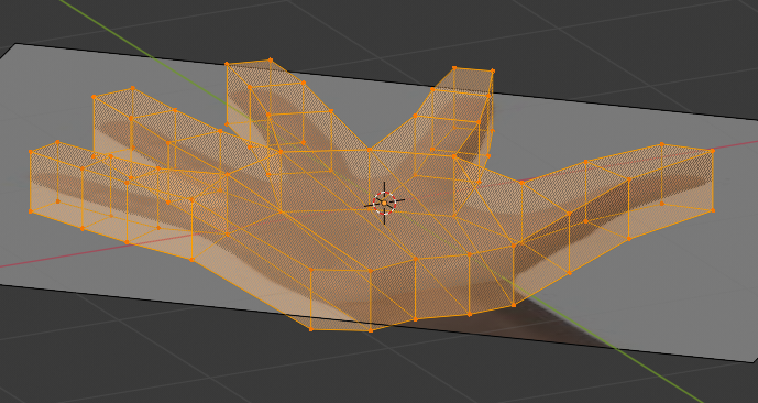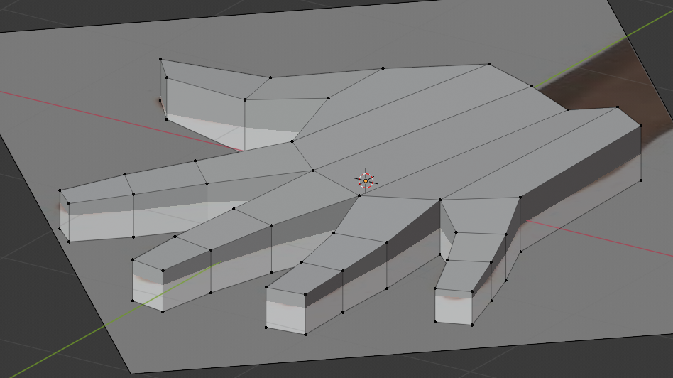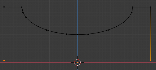 With the same edges selected, press E again, then Z. Drag them down near to the base line. Press F to create a new face using the selected vertices.