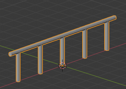 Set Vertices to 8 (or just a number considerably lower than 32). In Edit mode, move the cylinder up 1 meter. Press S Shift+Z to scale while constraining the Z axis. We’re trying to make a narrow pole for the rail supports.