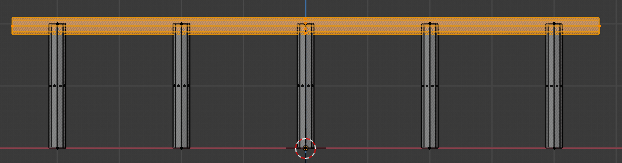 Return to Front view. Duplicate the middle pole, rotate it 90 degrees, and move it up. Scale it along the X axis so it touches all of the support poles. Hide this, and now to make a loop.